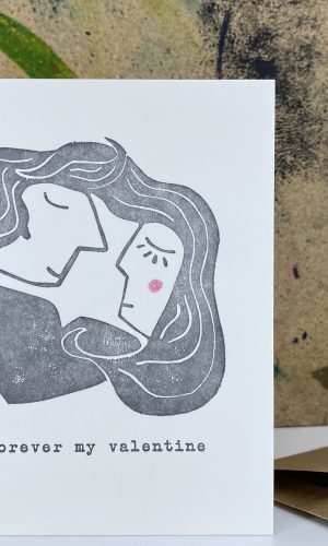 This letterpress eco-friendly greeting card began as an illustration – then became a hand carved linocut – then a linoprint and finally went through our letterpress platen a number of times, phew!